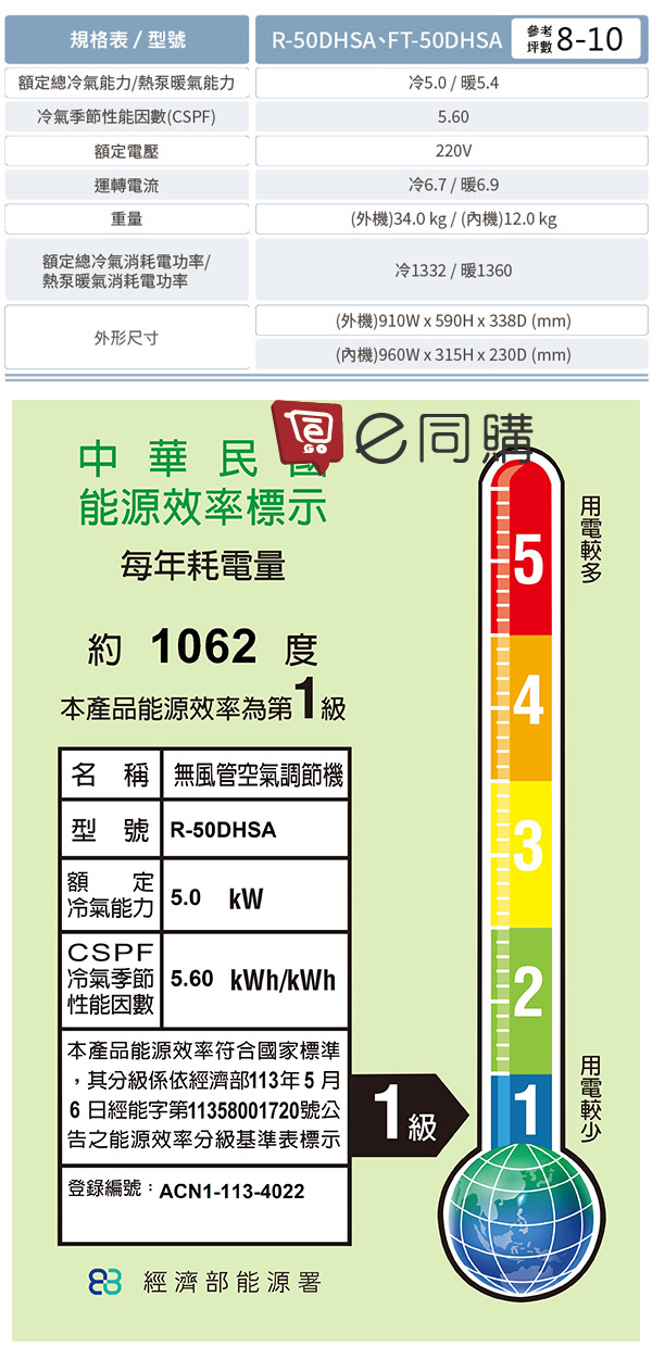 .能源效率一級最省電環保