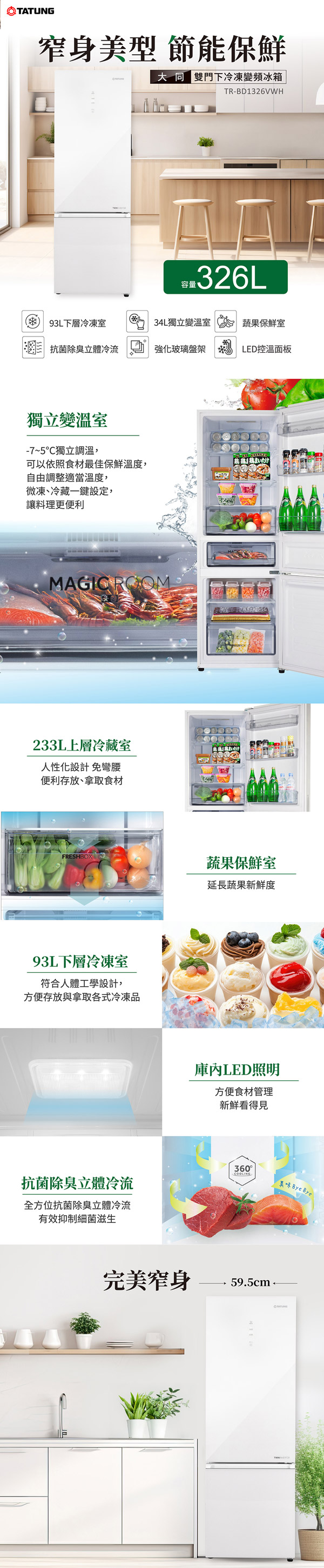 $23,900【TATUNG大同】547公升一級能效變頻超薄對開雙門冰箱 (TR-S1547VHT)
