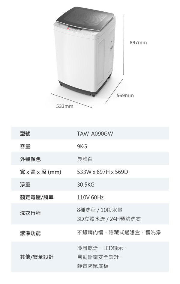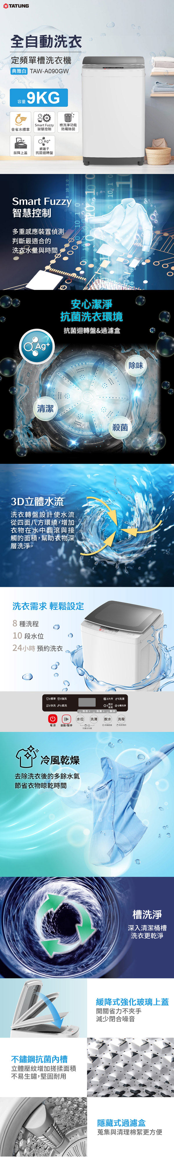 10公斤 直立變頻 大同洗衣機 TAW-A100DBS