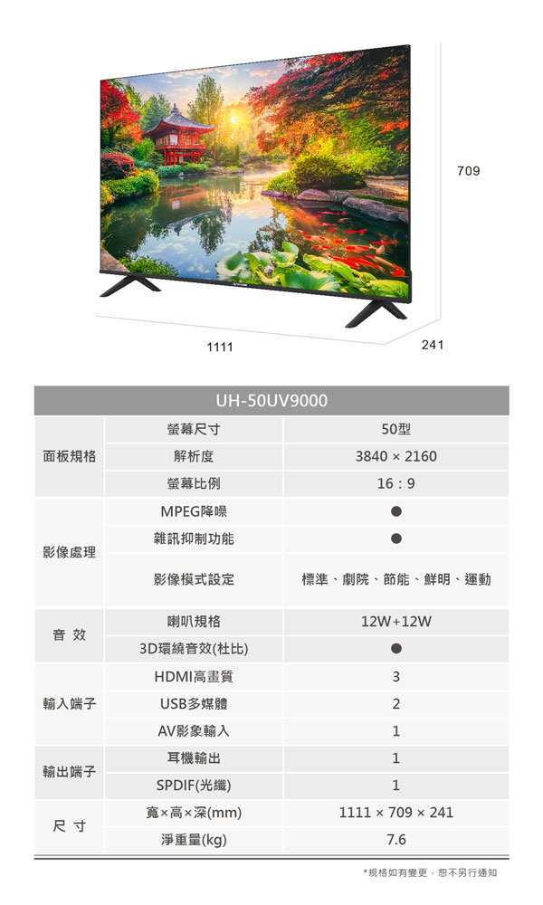 50型 智慧顯示器/大同液晶顯示器 UH-50UG900A