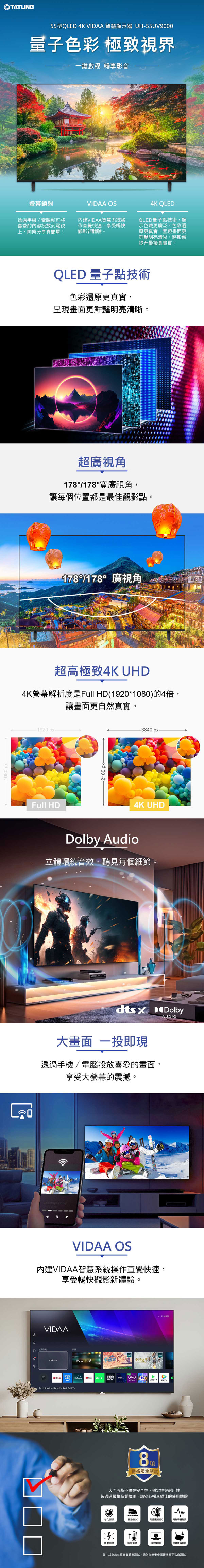 50型 QLED 4K VIDAA 大同液晶電視/大同液晶顯示器 UH-50UV9000