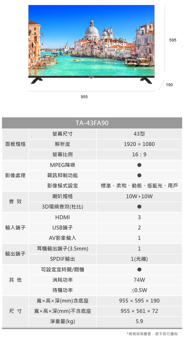 55型 大同液晶電視/大同液晶顯示器 TA-55UA90