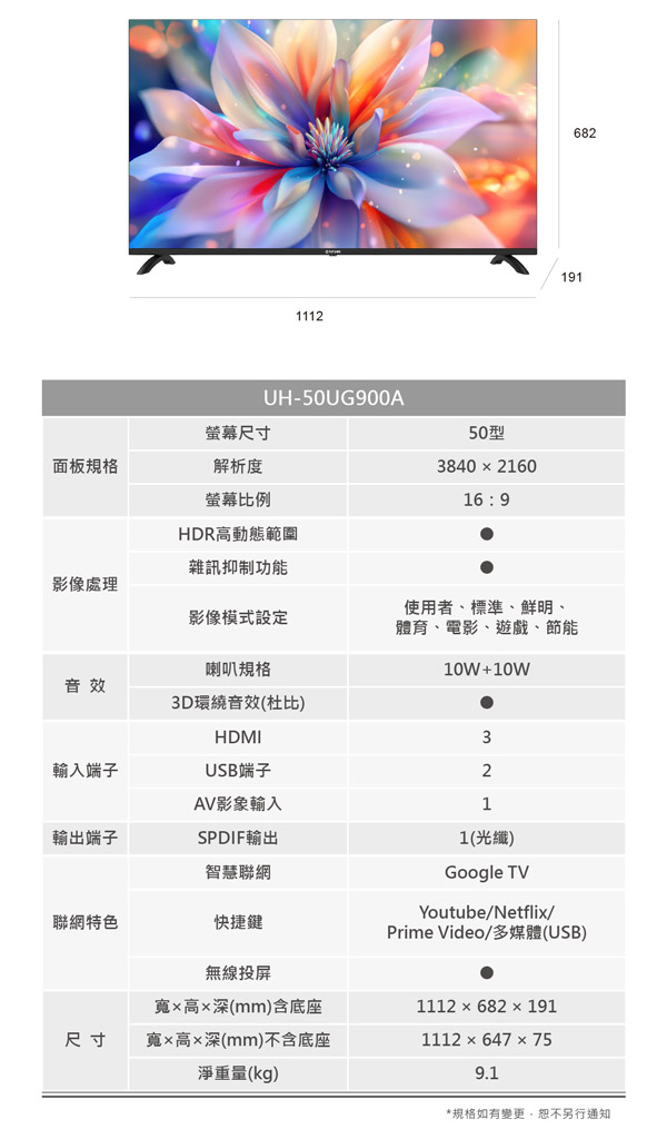 55型 智慧顯示器/大同液晶顯示器 UH-55UG900A