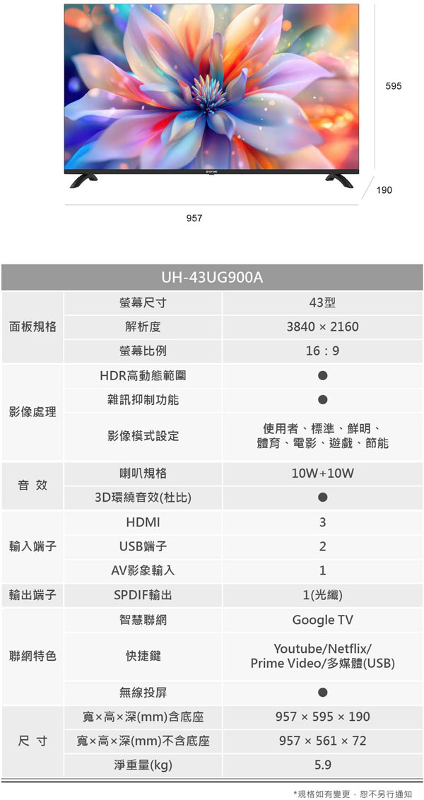 50型 4K Ggoogle TV 智慧顯示器/大同液晶顯示器 UH-50UG900A