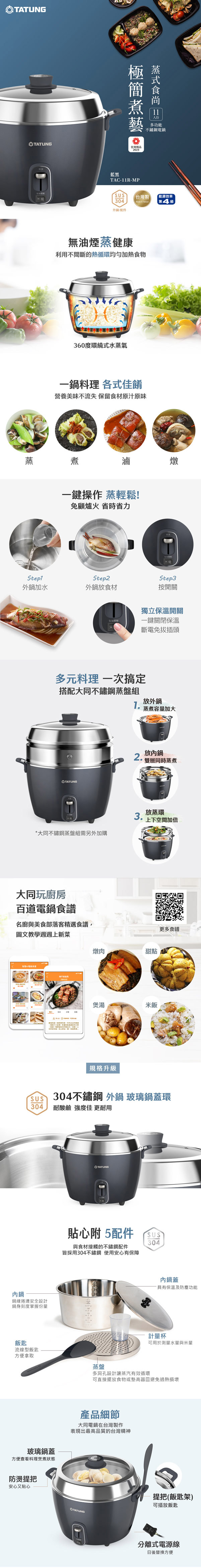 【TATUNG大同】11人份全不鏽鋼配件電鍋 (保溫切換開關) (TAC-11J-MM)