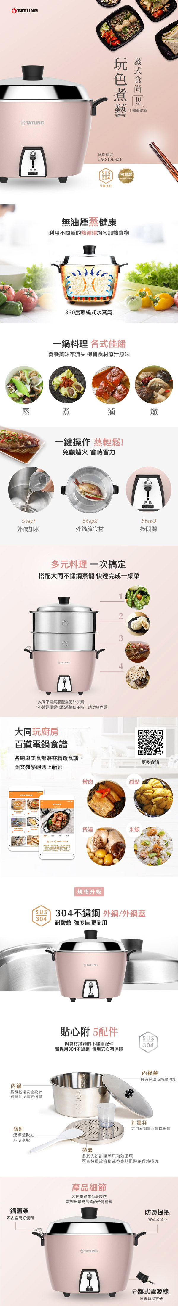 【TATUNG大同】10人份桃紅色全不鏽鋼配件電鍋 (TAC-10L-MCI)