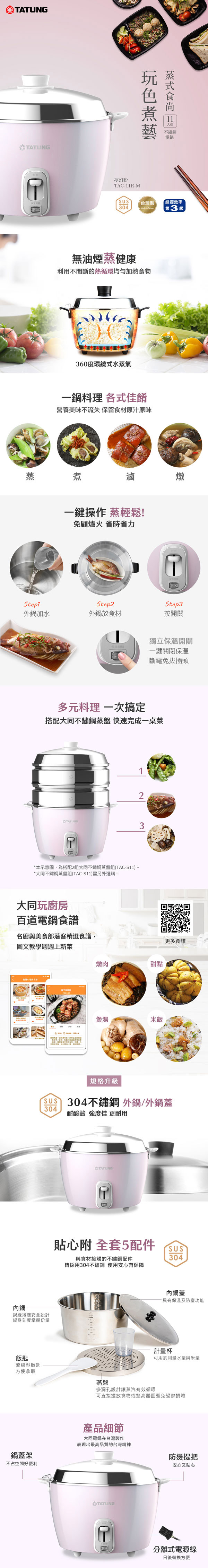$4,990【TATUNG大同】10人份桃紅色全不鏽鋼配件電鍋 (TAC-10L-MCI)