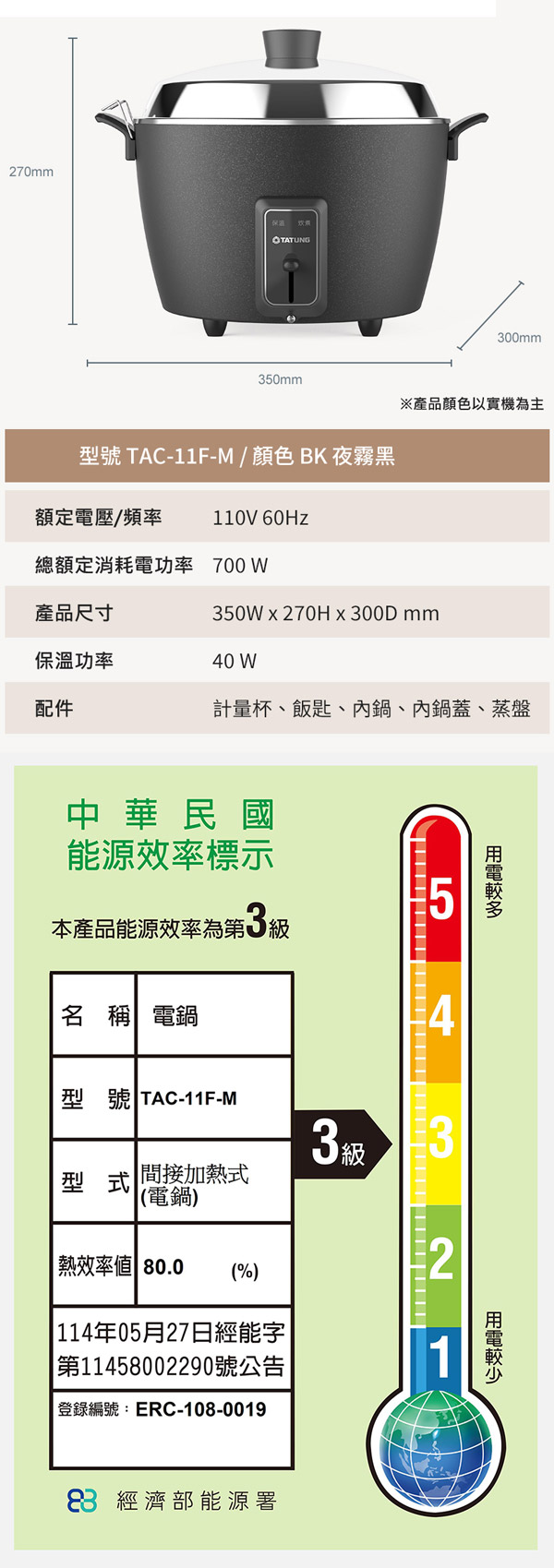 $4,490【TATUNG大同】11人份百年電鍋 (TAC-11V-MW)