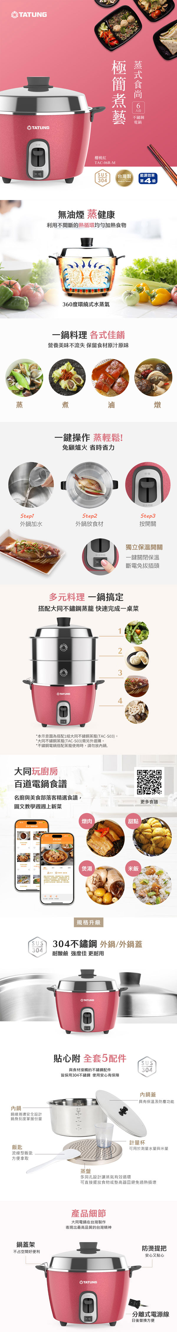 $3,990【TATUNG大同】6人份晶鑽灰多功能全不鏽鋼配件電鍋 (TAC-06I-NIG)
