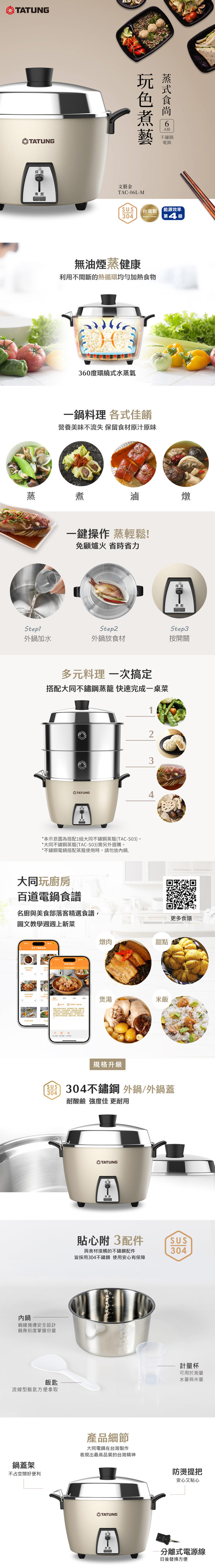 【TATUNG大同】6人份不鏽鋼配件電鍋 (TAC-06L-MCW)