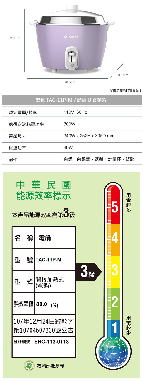 【TATUNG大同】11人份百年電鍋 (TAC-11V-MW)