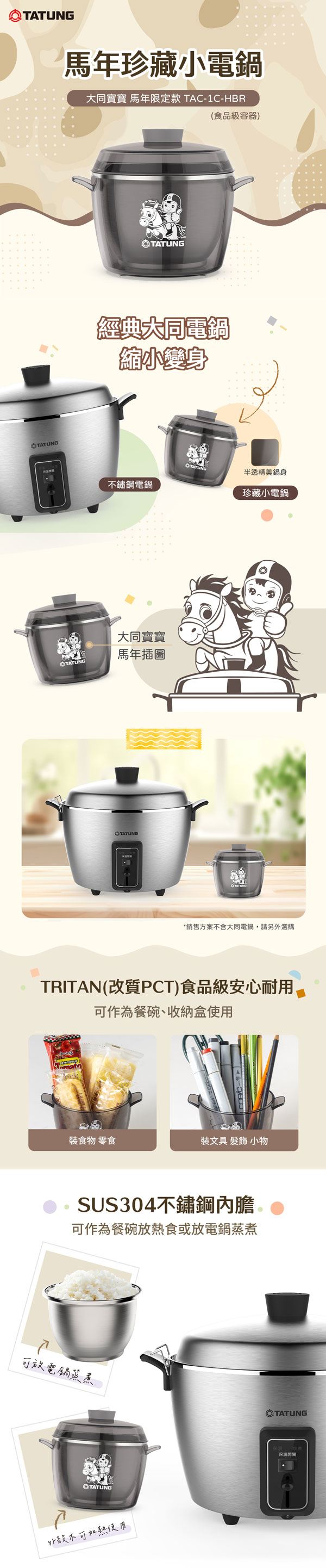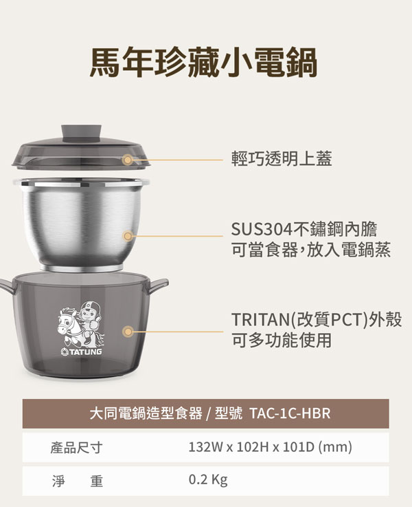 【TATUNG大同】3人份曜石灰不鏽鋼配件電鍋 (TAC-03D-NIG)