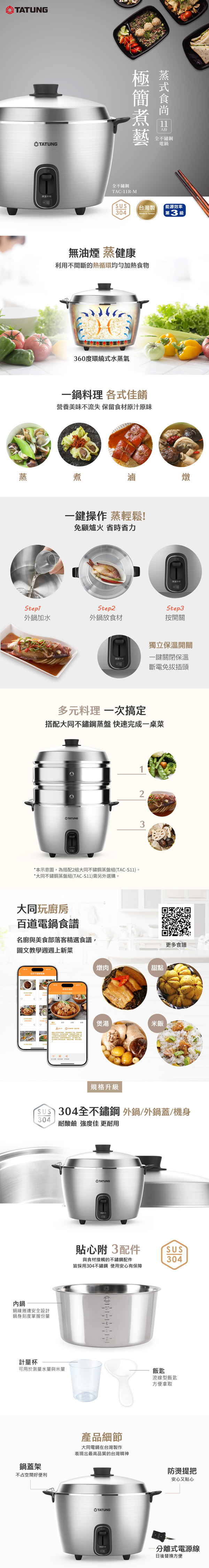 10/11人份 大同不鏽鋼蒸盤組 TAC-S11