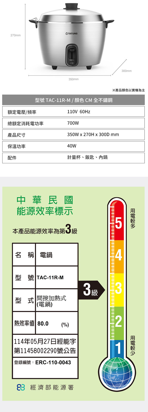 11人份 全不鏽鋼配件 大同電鍋 TAC-11P-M U香芋紫
