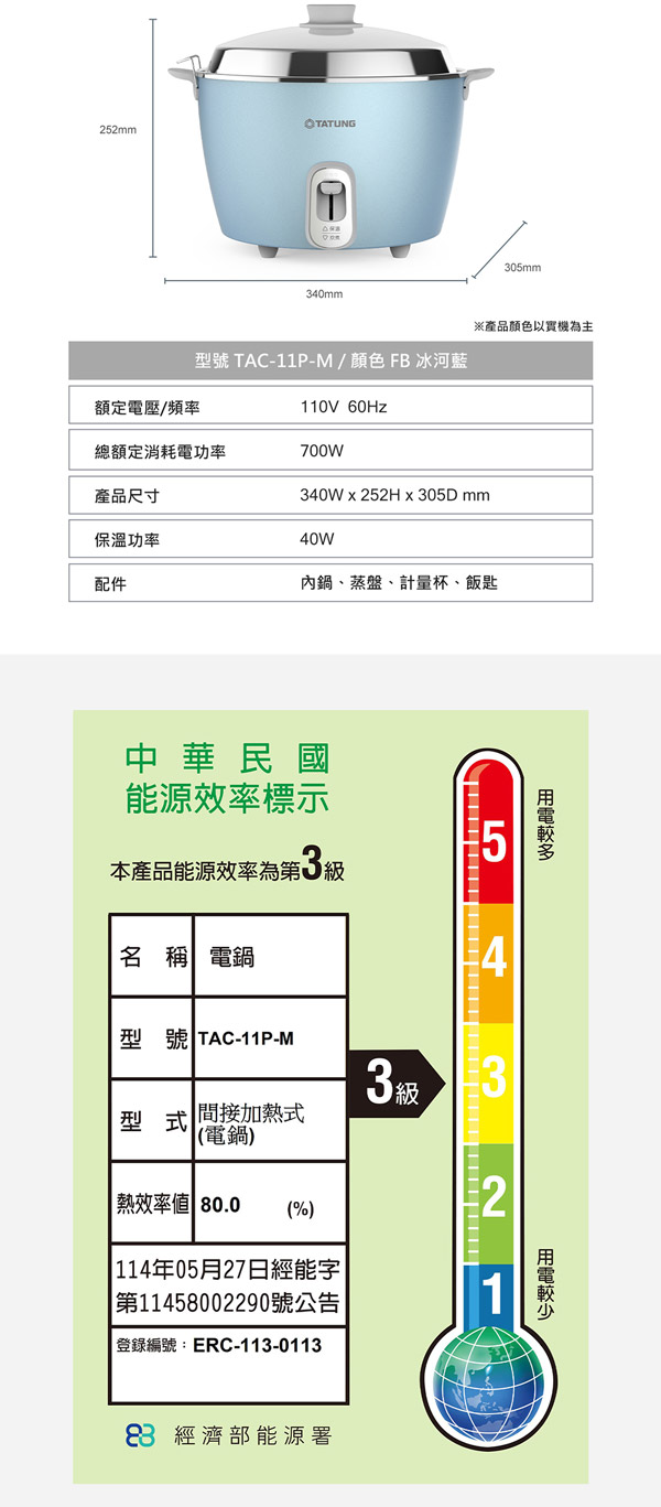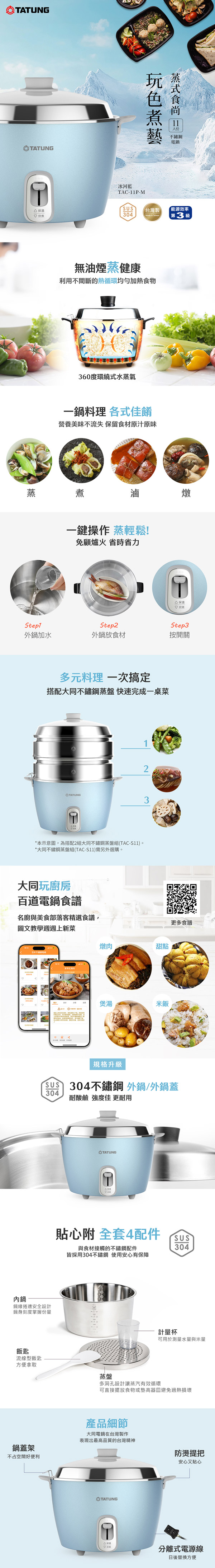 11人份 不鏽鋼配件 深鍋款大同電鍋 TAC-11L-H B夜幕藍