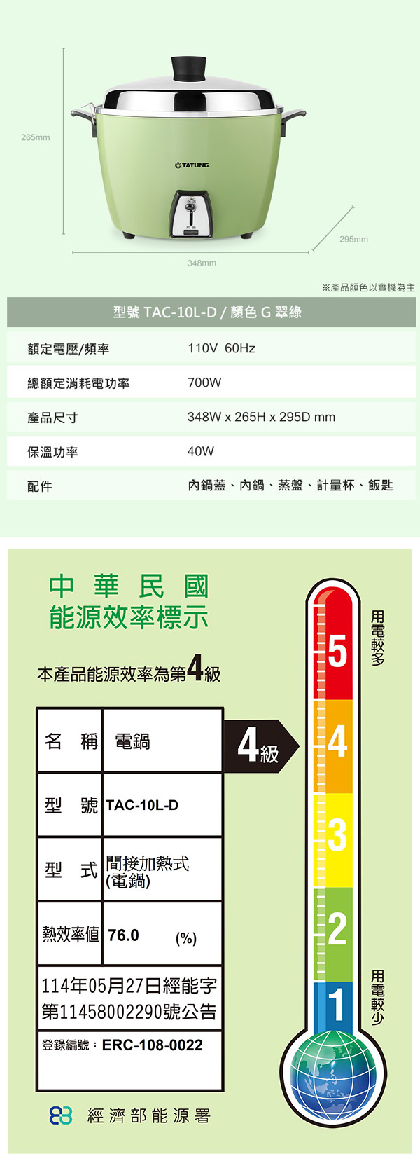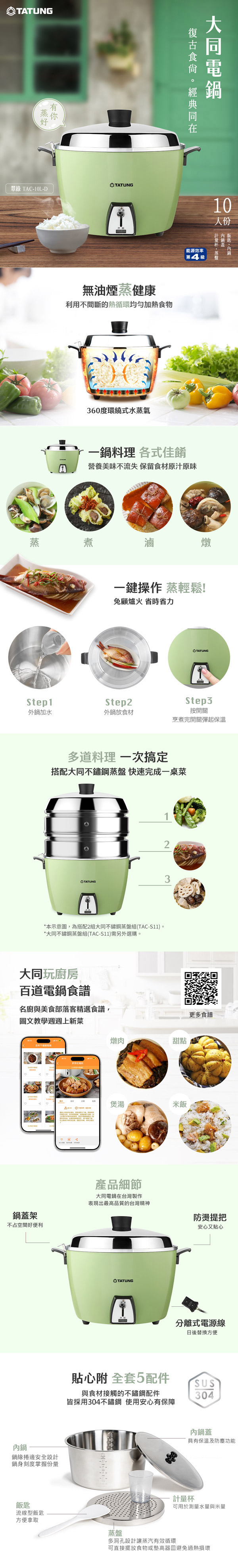【TATUNG大同】6人份大同寶寶綠色電鍋 (TAC-06L-DGU)