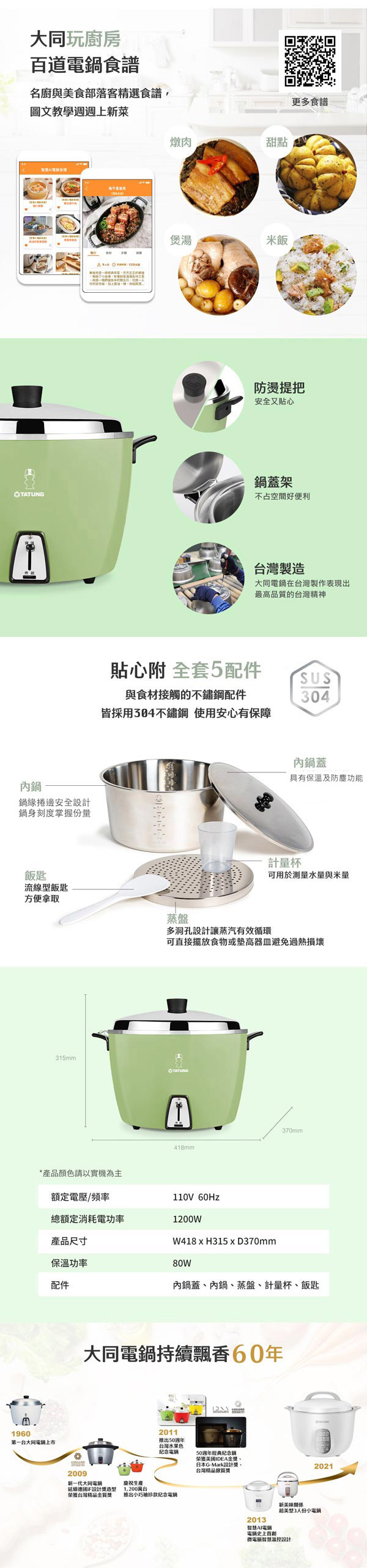 【TATUNG大同】11人份百年電鍋 (TAC-11V-MW)
