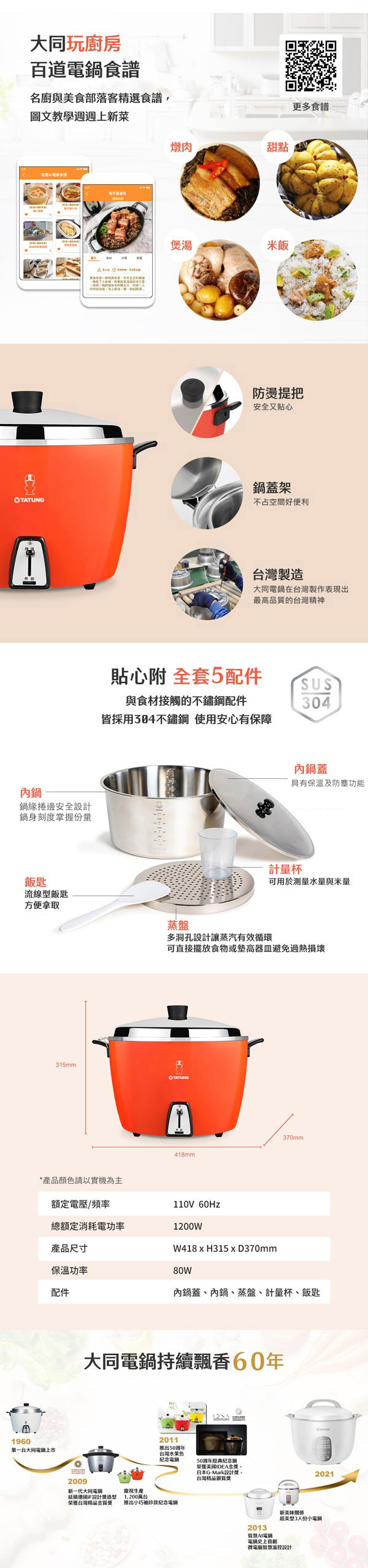 $300【TATUNG大同】6人份不鏽鋼配件電鍋 (TAC-06L-MCW)