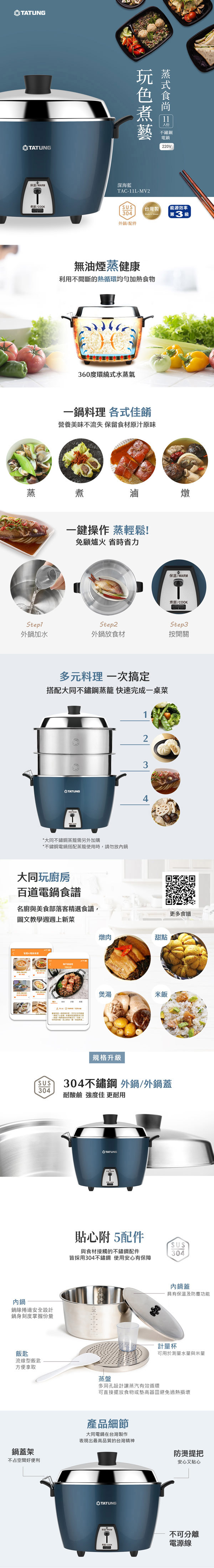 $4,690【TATUNG大同】220V異電壓11人份全不鏽鋼電配件電鍋 (TAC-11T-MMV2)