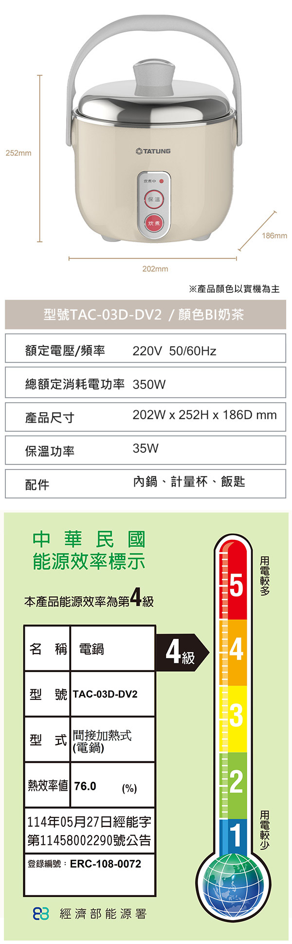 $4,390【TATUNG大同】220V異電壓6人份全不鏽鋼配件電鍋 (TAC-06I-NMV2)