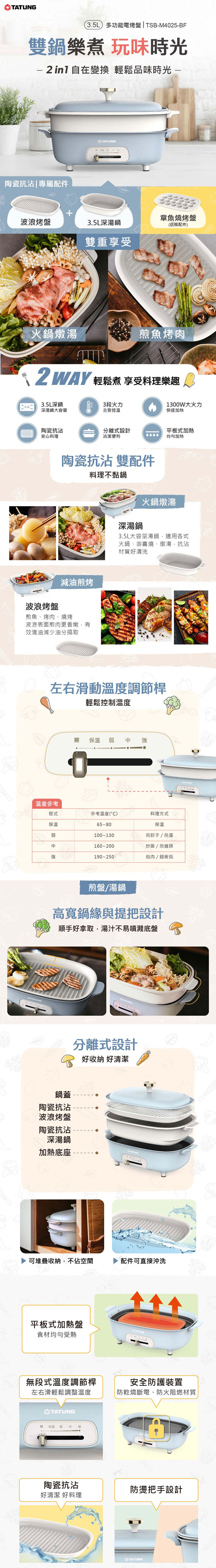 【TATUNG大同】5公升無段溫控陶瓷鴛鴦電火鍋/料理鍋/調理鍋 (TSB-B50A23C)