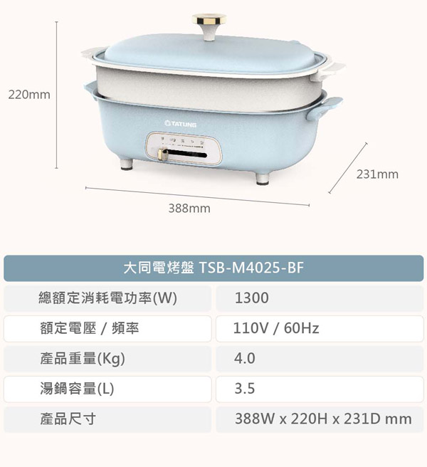 $2,690【TATUNG大同】複合料理無水鍋 (TSB-4021EA)