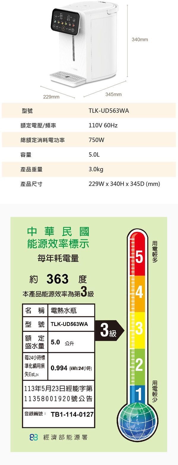 【TATUNG大同】5公升超大容量電熱水瓶 (TLK-565MB)
