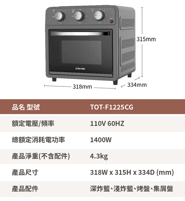 【TATUNG大同】20公升氣炸烤箱 (TOT-F2020A)